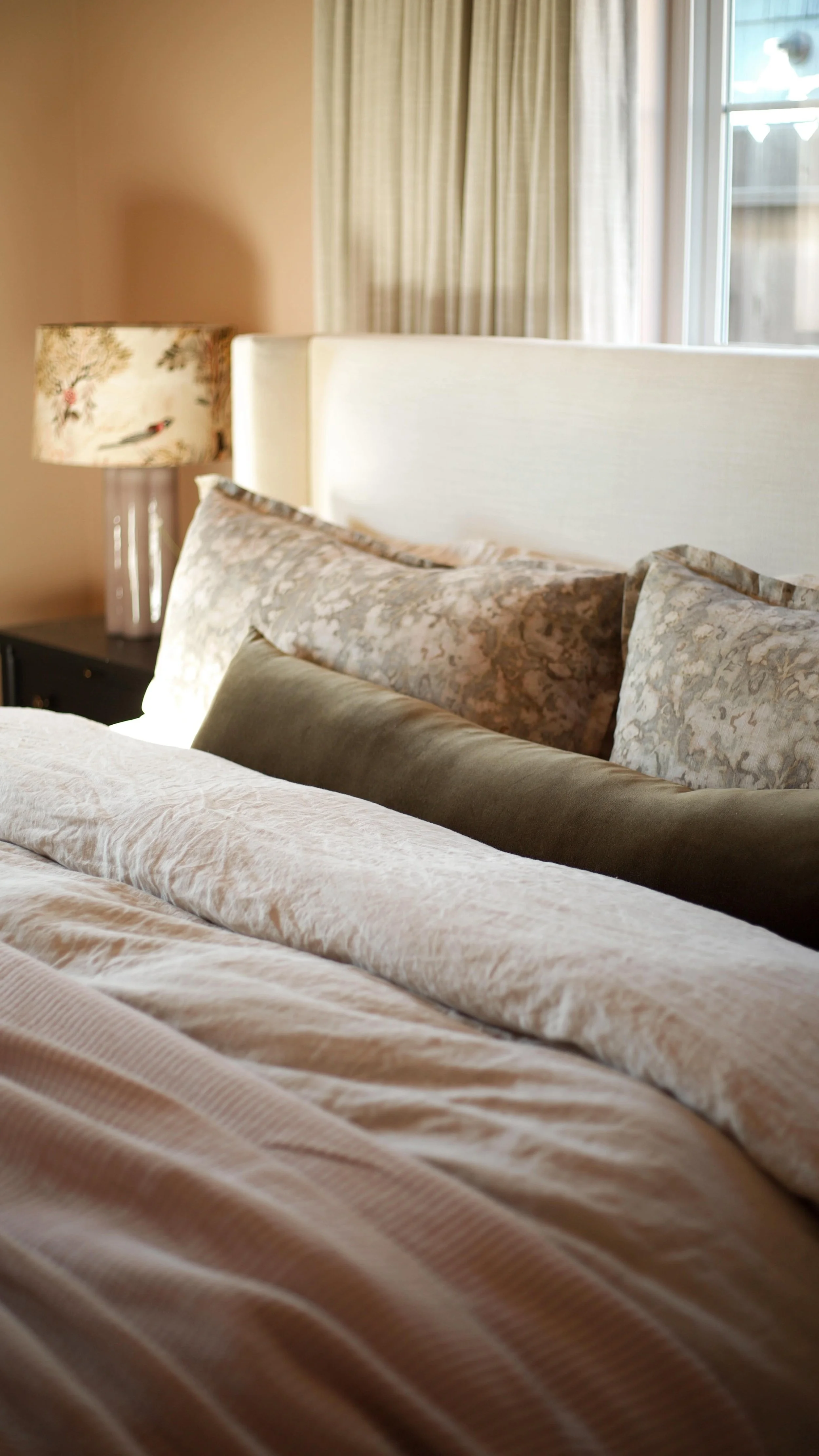 Deciding on the perfect paint color can be a real headache. I thought I had the perfect one the first time around but that wasn’t the case. I initially chose Old Prairie by Benjamin Moore. I painted the entire room and knew it wasn’t right. I sat on it for a few days, grabbed tons of new color samples, and came to a final decision. Old Prairie was a pretty color but did not coordinate with the shower tiles I installed. There was something off-putting about the combination. I landed on the perfect white: Soft Chamois by Benjamin Moore. It’s a creamy white that complimented all the elements in the room. I still love the color to this day!
