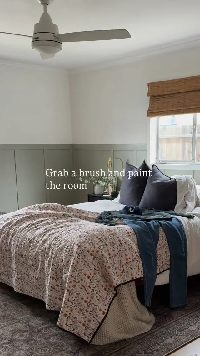 As you can see we had a board & batten wall treatment. We installed it in 2020 when modern wall treatments were a hot trend. We thought we nailed the design back then, LOL. Turns out six years later, we wanted our primary room to be more elegant. It started with moving everything out. By everything, I mean EVERYTHING. We had to change our sleeping arrangement for nearly two months.